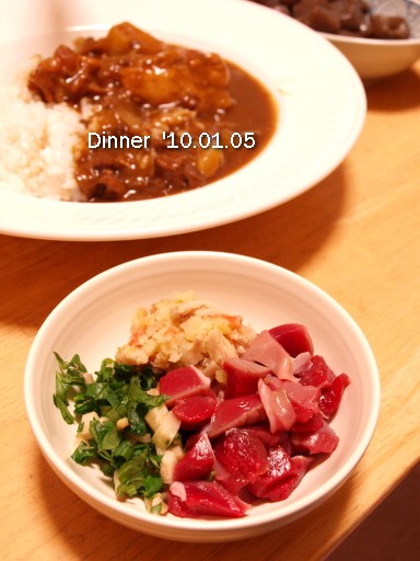 【砂肝エリンギ正月菜とツナポテサラダ】