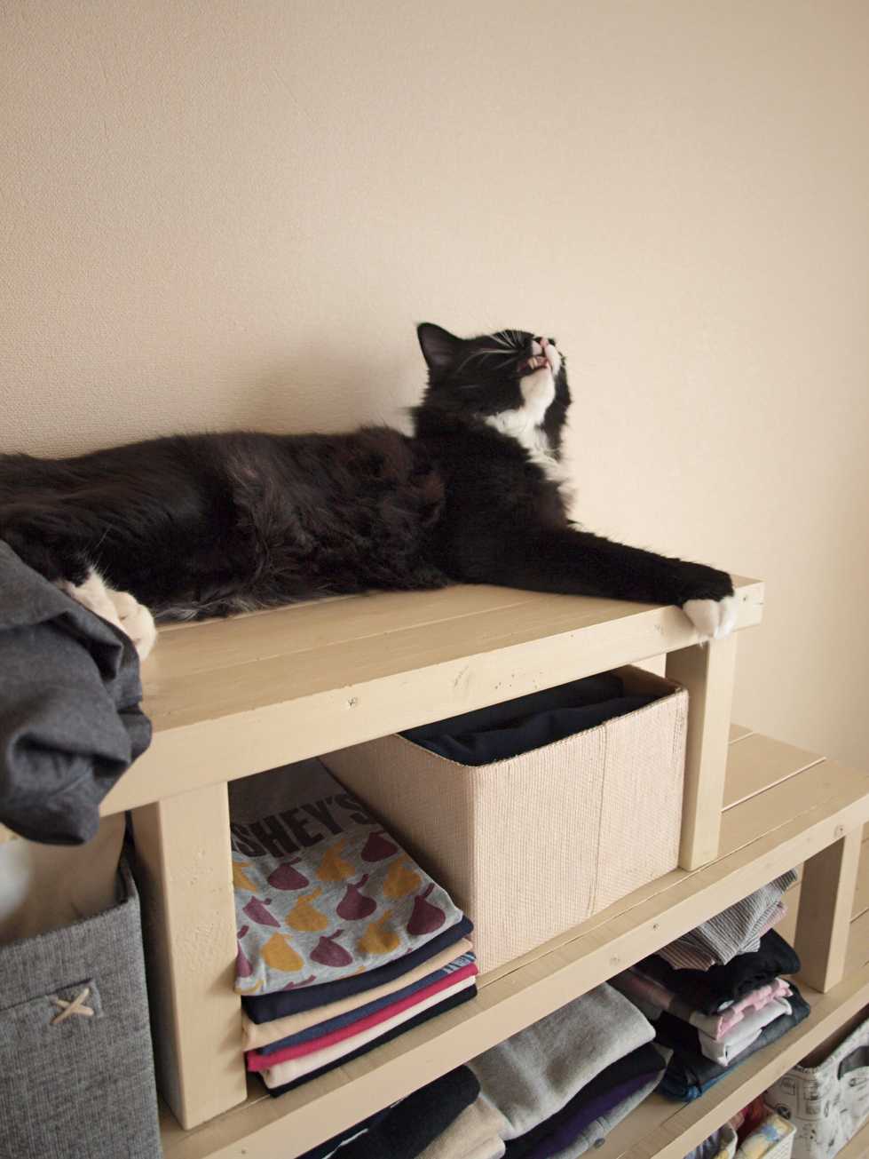 棚の上のくーちゃん。