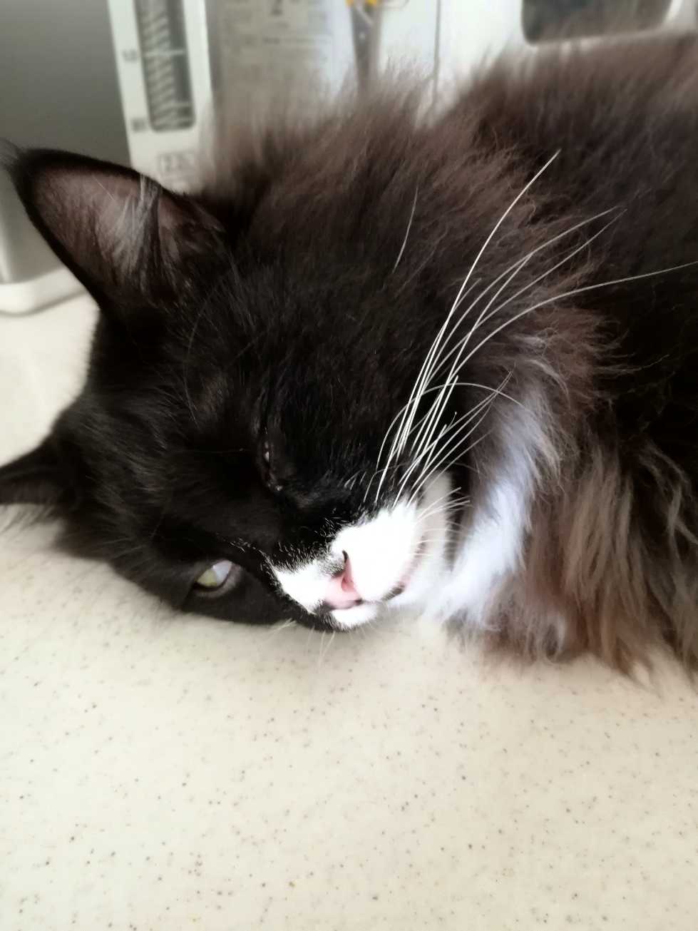 寝ておる。