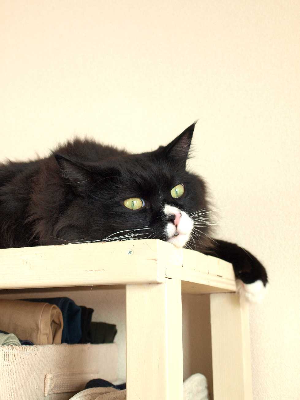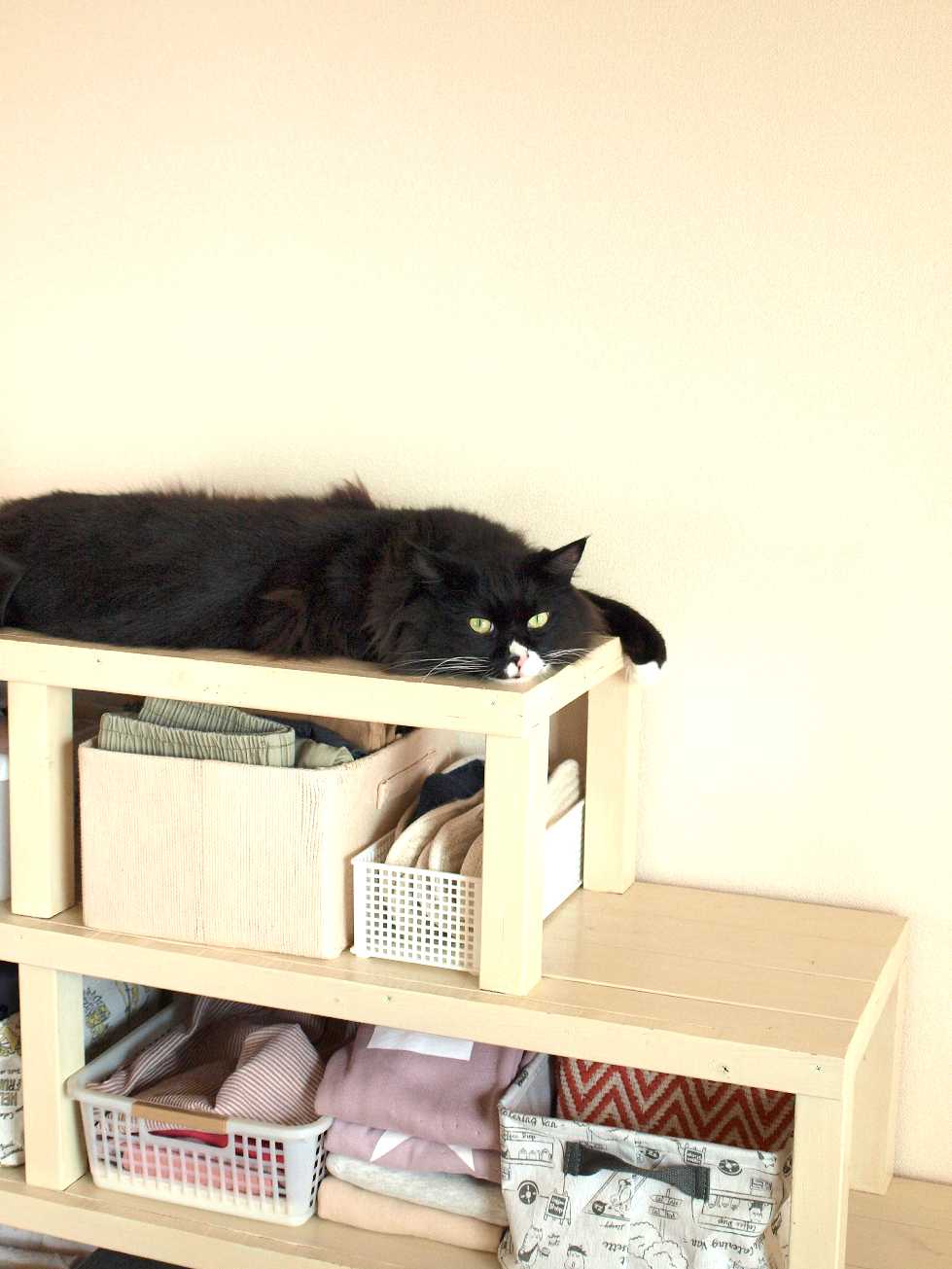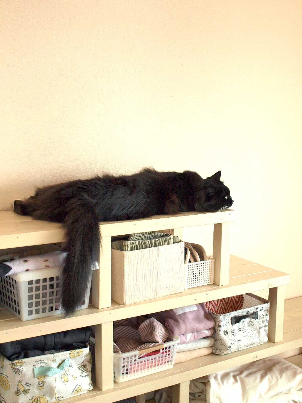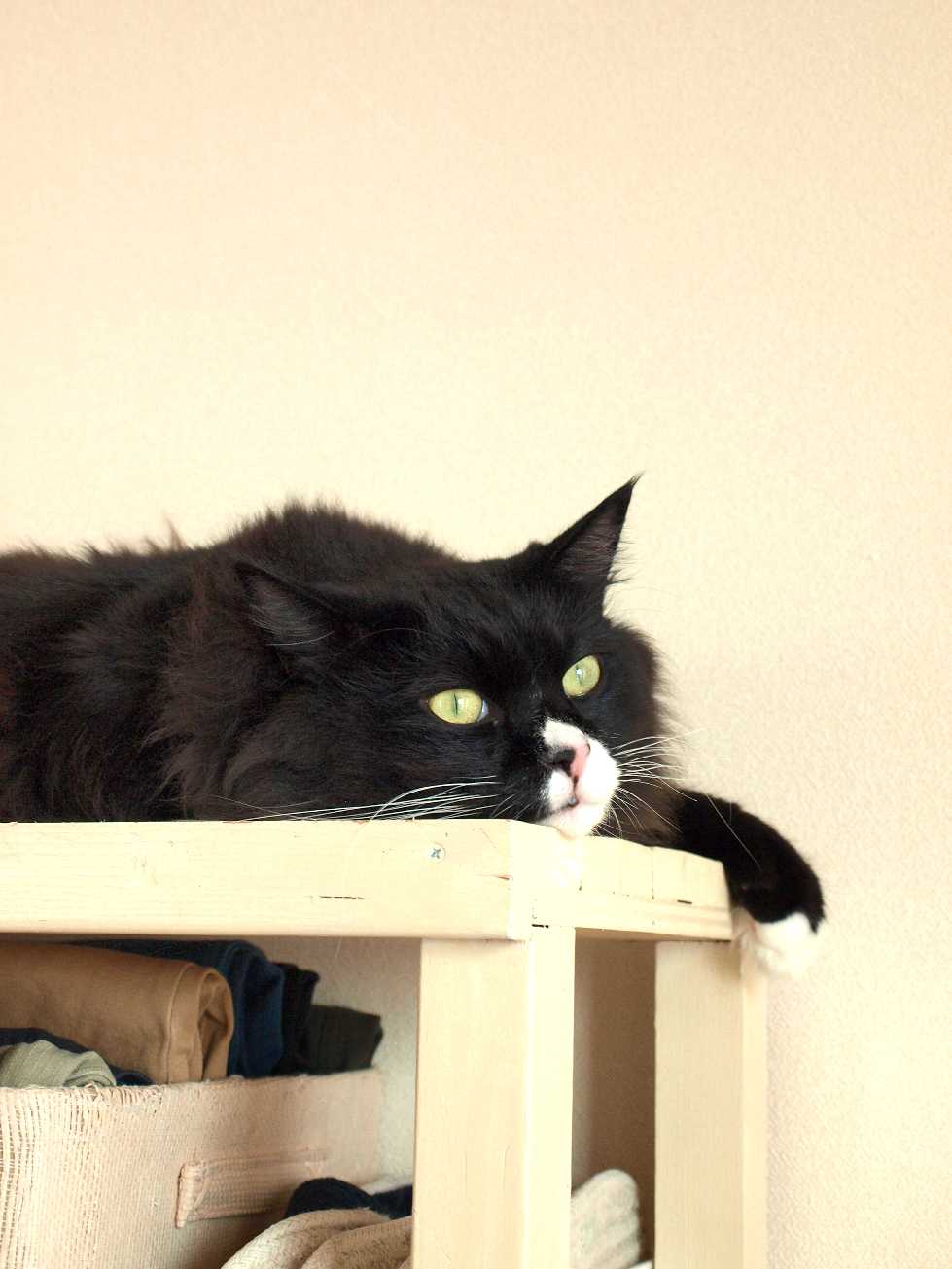棚の上で寝ている