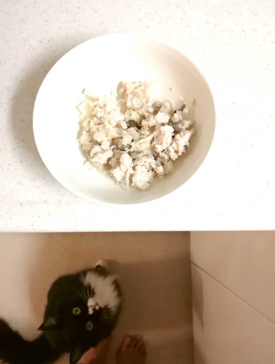 → 鶏ムネひき肉とキャベツの芯(猫ごはん)