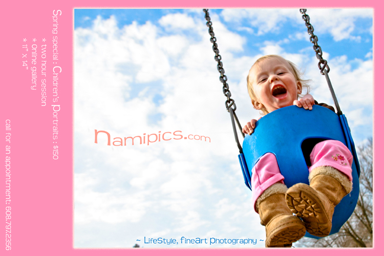 おひさしぶりです みなさんすっかり春ですねぇ 心がフワフワしますさて当たり前って言っちゃあ当たり前なんですが...ここのところわたくし収入が全くありませぬたった2ヶ月といえども一度閉めてしまった店の戸をオープンするのって見かけによらず かなりしんどいすね ... sigh 自分 計画性無さ過ぎ今更ですが あまりの支離滅裂さに呆れてます 予定されてる結婚式は6月に4つ7月に4つ…あと8月9月に何個かチラホラ今んとこそんだけ。。。だけどね、 もういいわうだうだネガティブオーラに浸らないことにしたのこれを機会に大好きなキッズ写真に力をいれてみよっかな~ なんて...人生楽しくいきたいです 気分の入れ替えもなかなか板についてきましたということで... 先週撮ったお気に入りの写真を使って キャンペーン広告を造ってみました (誰かさんのアイディア...わ~い お子ちゃまパワーってやっぱりいいなぁhope all is well with youkeep in touch,namip.s. 何を血迷ったか... ただ今 canon から nikon へと 全ギア移動中です 彼に鋭く指摘され、カメラを3台アップグレードすることにしたのはいいんですが、 今更改めて何十万も canon ギアにかけるなら いっそのこと nikon に移ってしまおう という... 恐るべき計画 実は canon にはうんざりしてたの だから気分さっぱり爽快 それにしても、、、 同じ機械といえども会社が違うとここまで手触りが違うものなのか レンズのつけ方からカードの入れ方まで ...just different あでもこの感触 なんか好きかも... いぇいぇいニコン なかなかやるね