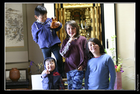 ということで 日本日本といえば実家 実家といえば父と母あれだね 親てのは不思議な存在 たとえば... うちの おかあさん母の機嫌ほど怖い物はない今さっきまでピチクパチクとご機嫌かと思ったらいきなり はぁ? なにぃ?あの瞬間... 憎悪の他何ものでもない心は通じているはずなのに 、なんていうんだろう、用件にたどり着く前に喧嘩になっちゃうたぶん私の存在というか者癖のどっかが 彼女のエゴをくすぐるんじゃないかななんにも変わってないそれから うちのお父さん朝から晩まで動いている母の苦労に気が付かぬのか ただフリをしているのか。。。家の事は一切しない自分のことすら殆どしないお茶一杯淹れられないどころか風呂から出てきてタオルとパンツが迎えていないと まごつくありがとうの一言もいえないの?どんなに悟ったふりしても 尊敬できないのはさてなぜでしょうなんにも変わってない日本ってずっとそんな存在だった 変わっていく自分と何も変わらない彼ら屈辱と愛情が渦巻いて 素直になれないふと油断すると涙がほろりと落ちそうで実家で心がくるしくなる瞬間愛情はあるでも尊敬した覚えがない大事な存在有難いですでももぉちょっと近づきたい幸せな空気を保ちたいからこそ気を使った限られた時間を 喧嘩で無駄にしたくないから...3週間実家にいたら クタクタでこっちに帰ってきてから 2日ほど寝込みました耳に残ってる 階段を上がってくる足音に 今でもひゃっとしますでも どこか可愛い チョコマカ動いて機嫌もコロコロ変わるお母さんとぼけてるふりして実はよく計算している真面目で人のいいお父さん残り少ない人生を お互い助け合って向上していきたい。。。 というのは虚しい理想像でしかないのだろうか?p.s. 只今かえりました ウェディングから... 風邪を引いてしまったらしく 行く寸前まで起きれなかったんですが 会場に着いたら 急にテンション上がりまして 一日飛ぶように流れていきました daytime theraFlu を飲んでいったからでしょう kind like a speed :D とりあえず 出たくて出たくてむずむずしていた写真さんたちです anyway,,, 子供達は充分に満喫したようです写真は私の従兄弟の子供達 全部そろうと男の子5人になります実りの多い滞在でした不満はあるが満足感謝