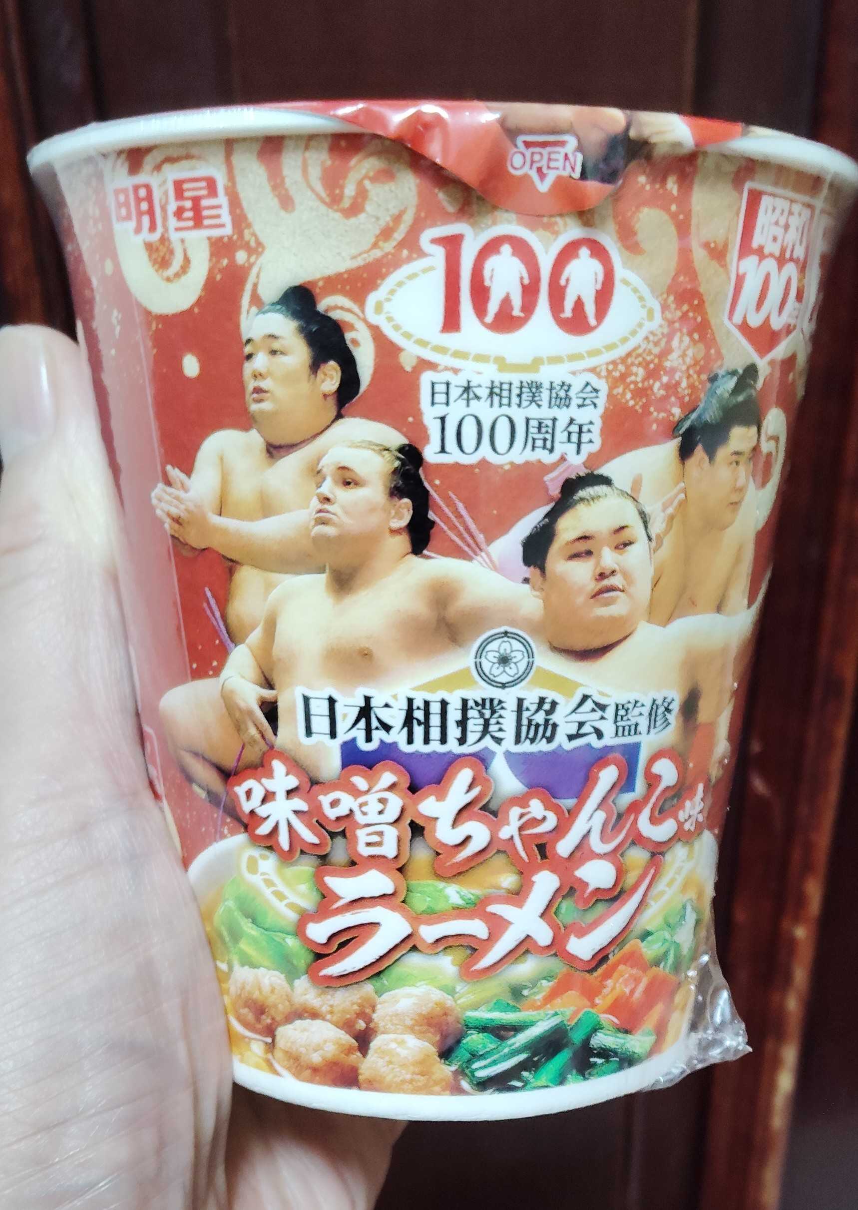 明星食品の味噌ちゃんこ味ラーメンです。明星食品創立75周年昭和100年でもあるため…