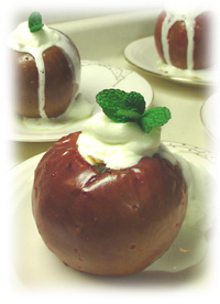 焼きリンゴ気がついたら我が家にストックされているちゃん冷蔵庫のそこからゴロゴロ・・・キッチンの隅にもゴロゴロ・・・数えてみたら19個もあるぅ~!?食材の宅配を利用しているので食べきると思って毎週頼んでいたら備蓄状態になってしまいました。傷む前に消費せねば!!思い切ってお一人様1個分贅沢に味わえる焼きリンゴを作ってみました。中身はバター&お砂糖に胡桃+ラム酒漬けしたレーズンナイフでcutしたら中から甘味エキスがジュワァ~と流れ出して子供達、大歓声!!【紅玉を使うとgood】といろんなレシピで書かれていたけれどあいにく紅玉は1個だけしかなかったので残りは‘ふじ‘で作り、食べ比べ。やはり紅玉で作ると皮のリンゴの赤色がキレイ‘ふじ‘は焼くうちに皮から赤色が抜けていき、少し茶色になっちゃった(写真手前のリンゴが紅玉、後ろが‘ふじ‘)紅玉の方は程よく柔らかくて、中のフィリングとトッピングの生クリームとがよく馴染んでおいしい~一方、‘ふじ‘は生で食べる時のシャッキリ感が少々残り、酸味がやや強め。もう少し、柔らかめになるとよかったな。パイやパンに入れるリンゴ煮と同じような味なのでまた食べたければ丸ごとしなくてもいつでも食べられるけれど一人1個分、堪能できるということで贅沢気分を味わえました。