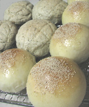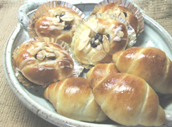バターロール&リンゴの編みパン 久々にイースト使用のバターロールを作りました。生地は300g。この量、成形時に40g分割したら14個できる。一人2個配分で我が家族の(適度な)おやつにちょうどいいみたい。(残りは。。。*^m^* フフフ・・・)半分を煮リンゴとレーズンを詰めたお花編みパンにしてみました。が、お花のように編むの難しい~柔らかい生地だからすぐに生地同士がくっついてしまってなんとか悪戦苦闘しながら成形したけれど焼きあがったら全然お花になんて見えな~いあまりに不恰好なのでアイシングでゴマカシ。ゴマカシ。。。(これがさらに下手っぴ)それでも焼きたては形関係なくおいしい~↑これがモカの分お正月過ぎてからはさらに開き直って食べまくり~
