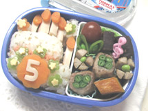 次男BBは今週が5歳のお誕生日今年に入ってからカレンダーを見ては、「この日がボクのたんじょうびだね♪」何度も確認してくる。こちらの希望もあれやこれや・・・こちらは苺たっぷりのったショートケーキをご希望♪「あと、パーティーにはクラッカーが必要。クラッカー屋さんで買ってきてね♪」なぁんて可愛い~リクエストそんなBBの為にお弁当でケーキ作ってみました。でも今日は寝坊しちゃったのでおかずも詰めるだけで精一杯でした。もっと可愛くしたかったのにー今の私にはこれが限度か・・・帰宅後のBBも「なんだかわからなかったけど『5』があったね~、何?」と言われてしまった来週はいよいよ2個弁ヒャ~寝坊しないようにしなくっちゃ