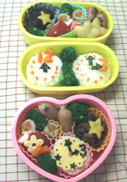 今月のお弁当はいきなり親子遠足から始まった・・・親子遠足日の3人分のお弁当「お弁当(中身)は何にしようかな~?」そうBBに聞いたら、即答で「あんぱんまん」自分も身支度あるのにできるかな???出発時間がいつもの登園バスより1時間後だったのでなんとかリクエストに応えられてよかった~。(その分、自分用は超手抜き)行き先はフラワーパーク花好きの私にとっては、「色んなお花を楽しめる」ちょっと期待していたけれど・・・お弁当食べたら広~い芝生広場で駆け回るBBに追いかけながら交渉したけれど「ここで遊ぶーーーー♪」他のママ友に「行ってらっしゃ~い」と見送ってお花散策は諦めることに先週のお弁当BBのお弁当箱を2段の大きめのモノに変えてみたら大喜び!!「ボク、大きいお弁当でも早く食べられるよ♪」こう話すBBだけど・・・朝ごはんは、どうしてそんなに食べるのが遅いの???私も最後の仕上げの海苔cutがなかなか上手くできずにキッーーーーとなり、時間切れへなちょこ眉毛のアンパンマン♪今日のお弁当飽きもせずまたアンパンマン弁当。遠足のため、小さなお弁当箱。何回作ってもなかなか上手くできない上手くできないのは私のセンスの問題だわC子は昨日から初めて幼稚園を休んだ。楽しみにしていた幼稚園を休むことになり、大泣きそれに高熱が出た割には元気があってなかなか大人しく寝ていてくれない。早く良くなるには少し、静かに過ごして欲しいのにな・・・明日にはまた元気いっぱいに登園できそう♪お兄ちゃんのA朗は今日から2泊3日の林間学校。お弁当持参だったので巨大おにぎり3個とおかず少々。(撮っている時間がなかった)先日の遠足のおにぎりが足りなかったようなので今日はボウル一杯分量のおにぎり最近のA朗、少しずつ食欲が増えてきたよう。少食から脱皮しつつあり、嬉しく感じる。それでもまだまだモヤシ体系のA朗、大きなリュックに寝袋セットしてヨロヨロしながら出かけていった夜は天体観測にキャンプファイヤーがあり、とても楽しみにしていた。どんなにたくましく成長してくるのかな?