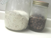 冬の今の時期は諦めていたけれど珍しく暖かな日々に思わずトライしてしまいました。自家製レーズン酵母作り♪発酵エキスだけでも1週間、酵母起こしでさらに1週間。ゆっくりじわりと時間をかけて遂に出来上がりました。使い慣れている方には何てことない酵母の様子初めて作り、酵母の成長を目にした私には感動の光景です^m^ 小さいビンしかなかったので、酵母は本に書かれていた材料の半量で作りました。表紙と一緒だ~♪とこれだけでおおはしゃぎのモカ^m^で、早速焼いたのがリュスティック しかも3種類!!左から・・・【イースト】【ホシノ天然酵母】【自家製レーズン酵母】味にどんな風に違いがあるのか食べ比べてみたくって【イースト】【ホシノ】は同じ日に焼けたけれど【レーズン酵母】は残念ながら翌日焼き。【イースト】はこちらを参考に↓面倒くさがらずにパートフェルメンテも作りましたでもこのレシピ、準強力粉使用でした。今回はオーベルジュ使用食べ比べ・・・使用する粉が違うので相応の結果に【ホシノ】【レーズン酵母】は国産はるゆたかブレンド使用でもわかったことは、【イースト】使用が一番香ばしく焼け、これも(自己)大満足でしたがやはり天然酵母の風味には敵わなかったです。上手く表現できませんが「口元で噛んでいる時の鼻抜けの香りが違う」主人が食べてすぐに違いに気がつきました。【レーズン酵母】は酵母起こしに全粒粉・オーベルジュを使ったので粉の良いとこ取りで本当にビックリするほどおいしいパンが焼けました。見た目はかなりショボイけど…外側の皮部分がめっちゃ薄いのにパリパリッ焼き立てをパクついているうちに3個目を手にしてました(笑)自家製酵母・・・ビンにベタッと張り付いているけれど使う時は、気持ち良いほどビンからキレイに剥がれるのも面白くってところで、発酵エキスに使用したレーズンこれはどうしたらいいのでしょうか?捨てちゃうの、勿体無~い。ぜひ利用法、教えてくださ~い ↑真ん中の本、見てみたい!こんな風にお家で焼けたらサイコーね♪