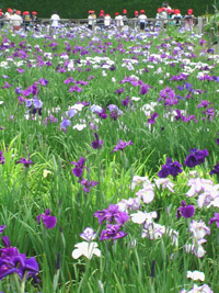 新聞に掲載されていた花しょうぶ園に行ってきました。 地域の方達にも楽しんでもらおうと園芸趣味の2夫婦が栽培されている花しょうぶ園。もちろん無料開放されています。今日は近くの小学生が社会科見学に訪れて、栽培者の奥様の話を熱心に聴いていました。(私も便乗して・・・) 敷地はかな~り広くて小学生達の向こう側にも花しょうぶが見えました。約50品種の3千株が植えられているそうです。お天気は曇り空だったので余計に花の色が鮮やかでとってもキレイでした。 C子が入園してから、いつも一緒に楽しんでいた花観賞付お散歩ができずに寂しい思いをしていました。かといって一人で行くのはもっと寂しすぎる・・・お花観賞はお天気次第だし、幼稚園のお迎え時間などを考えるとあまり急なお誘いも出来ず今日はたまたま休みでごろ寝していた主人をたたき起こして一緒に久しぶりのお花観賞を楽しんできました♪