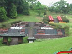 我が家の子供達は、長男(もうすぐ11歳)・次男(5歳)・長女(3歳)子供達の年齢が離れていることもあり、最近、どの子も満足するような遊び場所に連れて行くのが悩みの種そんな時、幼稚園の役員ママに「忍者気分で遊べる無料の(←これ重要)公園があるの。もちろん、幼稚園児から小学生まで思いっきり楽しめるよ♪」こう教えて頂き、早速子供たちを連れて行ってきました新城総合公園一部、球場サッカー場テニスコートなど有料施設(西駐車場側)がありますが子供達が遊ぶスペースは、わんぱく広場(東駐車場側)。もちろん駐車場代は無料(助かるわ~)公園に入ると山の斜面に広がるこの遊具がドドーンと目に入るもちろん途中にオチビちゃん用にかわいい遊具もあるけれど我が子達は斜面めがけて突進!!結構急斜面だけど意外にお兄ちゃん達は手早く登れてしまった。C子ちゃんもお兄ちゃんの後を追って頑張って登っていました私は真ん中の丸太階段をヒーヒー言いながら・・・こういう雰囲気ので競う番組、あったよね~登っていくとさらに奥に戦国時代の合戦の砦風のものが・・・こんな感じで忍者体験が続く?!忍者体験広場?のお隣はメルヘン広場??小動物達がたくさんいたり?マッシュルームみたいな滑り台+砂場展望台脇の広場では、タンポポの綿毛探しに夢中紫陽花の美しい季節至るところで見頃を迎え、とってもキレイでした。帰り際には・・・の傍の噴水広場でお決まりの水遊びC子ちゃんだけずぶ濡れになって遊んでいました。(濡れるのを嫌がったお兄ちゃん達はその間、おやつタイム♪)色んなコーナーがあるので、子供達は飽きるとドンドン別の広場へ移動。広いけれど移動しやすい位の距離間なのがよかった。たくさんの遊具、大人も一緒に挑戦すればかなりのダイエット効果筋肉痛あり?!でも子供達が一番夢中になっていたのは【タンポポの綿毛探し】かな周りは多くの木々に囲まれて、可愛い~鳥のせせらぎがBGM♪散歩しているだけでとっても癒される公園でした。思いっきり身体を動かした子供達帰りの車の中では爆睡ということで、ラ・ローズ・デ・バンにちょっと寄り道う~~ん、やっぱりお花鑑賞は午前中がいいかも。暑さでちょっとお疲れ気味の夕方のお庭でした。*ちなみに昨年の様子はこちらお疲れは、お庭のお花だけでなく私も朝は子供会の廃品回収・夜は自治会の盆踊りの練習・・・とかなりハードな1日でした。