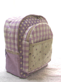 やった~!ついにできた~~~~♪♪♪春色♪遠足リュック幼稚園児C子の入園から1週間・・・まだミシンでカタカタ続けていました。そう、遠足のリュック♪♪です。昨年、次男BBにも作ったので今年もチャレンジ来週の火曜日の遠足に向けてダッシュで仕上げました内側はこんな感じでキルティングを使い2重にしたので中に何も入れなくても一応自立してます。表生地と裏のキルティングの色合い、合ってません(^_^;)作る前、本当は表も茶系にしようと思ってましたが家にある生地を入れているケースをあさっていたらなんとなく目に付いたパープルの生地、春のイメージにピッタリ♪ということでこの生地合わせになりました。(^_^;)裏だし、まっいっか~ポッケ部分にはまたまた大好きなレースを使ってファスナーは2本とも100円shopで購入。ハートが可愛くてこの色で何本も買っちゃった遠くの手芸店へわざわざ行かなくても最近は近所の100円shopの方でも小物系の品揃えが充実しています~♪BBのリュックは面倒くさがってスナップボタンにしちゃったけれど遠足から帰ってくるといつもリュックが全開~中身が丸見えです。今回はファスナーできちんと閉めれるようにしました。ファスナー縫ったの、何十年ぶり?!背中部分もドットを使って遠足の軽やかな雰囲気に!肩紐にもしつこくレースを使いました。でもこの面、実は大失敗しちゃったんですよ~く見ればすぐにわかるくらいのミスなの~使うには不便ないからこのまま目をつぶることに・・・なんとか遠足に間に合ってよかった~♪娘も喜んで早速自分のお気に入りのおもちゃを詰めてます(^_^;) 4月から私も心機一転。お兄ちゃんの子供会の役員・幼稚園の役員を引き受けました。新たな出会い、色んなお仕事でこれから忙しくなりそうです♪おっちょこちょいの私なので皆さんにご迷惑かけないよう精一杯、頑張りたいと思います