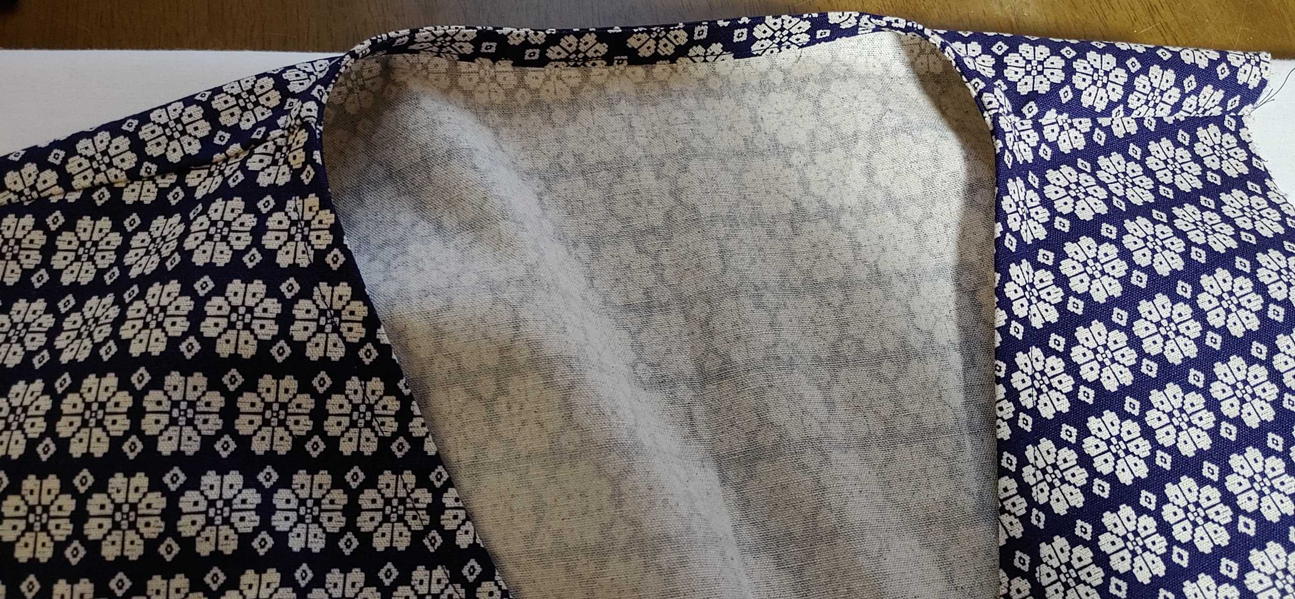カシュクール部分は伸びやすいから芯を貼ってバイアステープ。