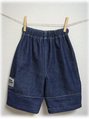 初めて服を作ってみました!中学、高校、家庭科の時間では「やらなくてはいけない」っていうのが性に合わずエプロンもパーカーも仕上がらなかった私・・・。初めて服ができて初めて味わう達成感です・・・。デニムの色がもっと濃いのがよかったんだけどとりあえず練習なんで、ま、いっかって感じで。写真よりはもうちょい濃いように思うんですが。「カジュアル&トラッドで決める!男の子服」って本を図書館で借りてきて、型紙を写して・・・家庭科でなんどとやってきた(であろう)ことなのに思うようにはかどらず・・・3日かかりました・・・。本とは型が一緒なはずなのに、生地も違うし本の通りにやらなかったので、全然違う仕上がりに。ちょっと着せてみないと分からないけど女の子っぽいかなぁ・・・。チロルテープでワッペンみたいにするのに、チロルテープがなくって、自分である布を縫い付けてみました。本ではカーキのデニム地にアメリカ国旗のチロルテープを使っていて、ミリタリー風でかわいいんです。今度は本の通り作ろう・・・。でも、まぁ着せてみよう!楽しみ♪デニムは近所の手芸屋さんで購入。ポケットの布はこないだ買ったのどくろのをちょっととお友達にいただいたイカリの布をちょっとずつ。へたぴーだけど、これは楽しい!次は何を作ろうかなぁ~♪この借りてる本は、ロングのパンツはどれもいまひとつな感じがしますが、ハーフパンツとかはどれもかわいいなって思います。その通りにできればの話ですが・・・。うーん、がんばるぞー!