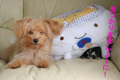 昨日の『ホタルのヒカリ』の余韻に浸っています見てた人いますか?私は2話だか3話から見始めたんですが、すっごくはまってました。あ~、楽しみがひとつ減っちゃった秋のドラマのチェック始めなきゃ お薦めがあったら教えて下さいねさてさて今日も、大賑わいの我家。。。まずは、5ヶ月ならではの夢中シーン車のカドラーをおもちゃ箱にしてるんですが、ほとんどのおもちゃを出した挙句、自分もおもちゃ箱入り^m^ この無様な後姿。。。顔だけ見てると気づかないかもしれないけど、毛が薄いんですそして、まだまだ5ヶ月の甘えん坊^m^ 私がお風呂からあがると決まって、ソファの肘掛でお決まりのこのポーズ☆ でもね、翌朝(今日)は同じこのソファの肘掛で、豹変チョコ(ーー;)ショコラ~、頑張れ~ ショコラがおしっこしにリビングに出て来るのを見つけては、待ってました~☆と・・・突撃! ピンクの座椅子と空気清浄機の隙間で身動きできないショコラ(T_T)自分のケージに戻りたくても、戻れないで脅えてました。この後、ベランダからお外を見て、『クゥーン』って言ってるので、 こんな心境かな~と思って、母親に電話で報告したら、お散歩に行きたいのよだって^m^そっか~と思い、お散歩に連れて行ったのが17時半、みんなと大盛り上がりで、公園を解散したのが、20時半でしたW( ̄▽ ̄;)W 楽しかった~お散歩中もチョコは、ショコラをいじめてましたよ(-"-)ただいまチワワブログランキング接戦中です。かろうじて11位ですが、皆様の愛の1票恵んでくださいm(__)m ←こちらを1クリックご協力お願いしま~す☆-----------------------------------------------------------------今月お誕生日のショコラ、ベッドが汚いから、ベッド買ってあげようかな~。かわいくない?