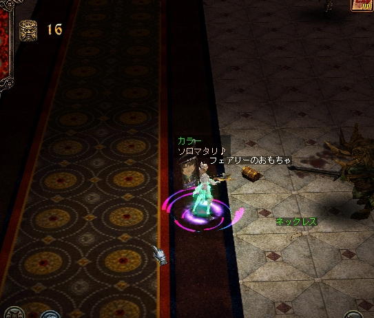 ( ̄0 ̄)こ( ̄ー ̄)ん( ̄〇 ̄)ば( ̄ー ̄)ん( ̄〇 ̄)わ今日は私が主催してギルドイベントを開催しましたまずは開催中のssを・・・ギルメンががんばっている中、城でひたすらお留守番ですギルドイベントの内容を発表です~まぁ・・・つまらないイベント内容ですけど ``r(^^;)ポリポリ( ̄ω ̄;)エートォ...ここからの発言イメージは・・・チャーリーズエンジェル?のボス?のような雰囲気で~・・・・・・・・・・・・・・・・・・・・・・・・・・・・・・・・・・・・・・・・・・・・・・・・・・・・・・・・・・・・・・・・・・・・・・・・・・・・・・・・・・・・ギルドイベント「マダムシェリルのわがまま」 [壁]=゜▽゜)ノ ヤァ♪ギルドLGHのギルメン諸君、( ´_ゝ`)ノボンジュール♪ギルマスのカラーです|壁|・_・)y―~今回の君たちへのミッション名は・・・「マダム・シェリルへのわがまま」だ・・・依頼人のマダム・シェリルは大変わがままでねぇ・・・また、お金が好きなのだよ・・・(化粧・洋服代・エステ代にお金がかかるw)内容は簡単だ・・・スタート時刻の21:00から22:00まで各自ソロでモンスターを狩り落ちたアイテムを売却した金額で順位を決めるよ・・・ただ~~~~しエビルなどのボスダンジョン&図書館は禁止だ・・・ここまでは前回の「マダム・シェリルの貢物」と同じなんだがねぇまぁ・・・わがままな人なのは何回も教えているが・・・マダムのわがままで以下のアイテムは必須なんだよ・・・「赤色の防具・金色の防具・青色の防具」しかも・・・どこかの部位で統一していなくてはならないらしい・・・例えば・・・腕とかでねぇ・・・┐( ̄ヘ ̄)┌ フゥゥ~(わがままなマダムだ・・・)さらには・・・「今回はアクセサリーも欲しいわ☆」ときたもんだ・・・しかも・・・「背景が黄色のディバインアクセでよろしくね☆」だと・・・優秀な君たちだと依頼人のわがままを満足させられると信じているよでは・・・検討を祈る・・・。。。ρ(▼、▼*)ポチッ|彡サッ ・・・・・・・・・・・・・・・・・・・・・・・・・・・・・・・・・・・・・・・・・・・・・・・・・・・・・・・・・・・・・・・・・・・・・・・・・・・・・・・・・・・・こんな感じでイベント内容が伝えられるのですが・・・でも・・・まぁ・・・わざと曖昧な部分で内容が説明しています・・・(´-`) ンー謎を解読することから楽しんでもらいたいわけで・・・悪戯心満載です~ (-ι- ) クックック景品を準備しているので楽しませてください! (アッイベントの内容を説明したいと思います1:赤防具・金防具・青防具のどこかの部位を統一して揃えること (例:赤・金・青の色の足で揃える)2:ディバインアクセを1つ拾うこと (ノモアクセ・アヴァアクセ)3:勝敗は必須アイテムの店売り価格の合計金額で決定1と2の必須アイテムを収集することが第1条件です(ギルメンはアクセを拾うことがきびしかったようですねぇ)問題は「3」の条件ですね店売り価格で順位を決めるので「補正」が鍵を握りますここから先は「戦略・選択」・「運」が順位に影響を与えます「戦略・選択」1:狩場をどこにするのか?2:どこの部位を集めるのか?3:効率よく収集できるのか?4:同じような補正でも店売り価格の上位なものを素早く選べるかどうか?「運」日ごろの行い・・……(-。-) ボソッ (マテッまぁ・・・楽しんでもらえたみたいので開催してよかったと思います結構・・・厳しい条件だったらしく時間延長しましたけど (^^;;最後に記念のssを (=゜-゜)ノ□ペタッニャンおそまつさまでした~ ( ̄∇ ̄*)ゞエヘヘ