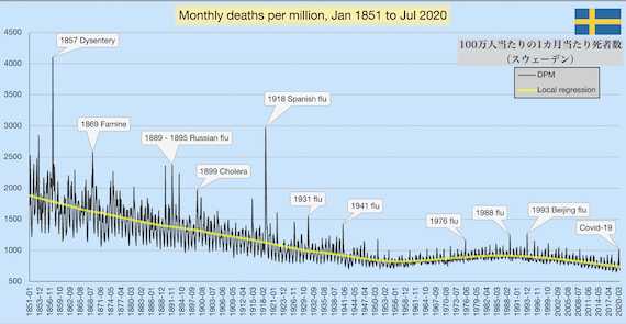 これまで西側の少なからぬ政府や大半の有力メディアはSARS-CoV-2(重症急性呼吸器症候群コロナウイルス2)への恐怖心を煽ってきた。社会の収容所化やワクチン接種の下地を作ったと言えるが、ワクチンの安全性に対する疑問は恐怖心で押さえ込めていないようで、アメリカのマイク・ペンス副大統領やイスラエルのベンヤミン・ネタニヤフ首相がファイザー製のワクチンを接種するというパフォーマンスをする事態になった。 開発途上のワクチンを接種するという事態を作り上げたのはWHO(世界保健機構)のパンデミック宣言で始まったコロナ騒動。欧米を中心にロックダウン(監禁政策)が推進されたが、例外的にロックダウンしなかった国がスウェーデン。この国の政府はここにきて市民に対し、公共の場ではマスクをするように推奨している。命令しているわけではない。ロックダウンしなかったことでスウェーデンではCOVID-19(2019年-コロナウイルス感染症)による死者が街にあふれているかのような話も伝わっているが、ロックダウン実施国に比べて状況は悪くないとする報告がある。 COVID-19のイメージが「スペイン風邪」に重ねて語られることも少なくない。最近では広く知られるようになっているが、この伝染病はスペインから広まったわけでなく、最初の患者はアメリカのカンザス州にあるフォート・ライリーにいたアメリカ兵だった可能性が高い。1917年の夏、新兵を訓練するためにキャンプ・ファンストンがここに建設されていたのだ。 この伝染病はインフルエンザだとされることが多いが、アメリカの国立アレルギー感染症研究所(NIAID)によると、1918年から19年にかけて死亡した人の大半は細菌性肺炎による可能性が高いという。インフルエンザ・ウイルスだけが原因ではないというのだ。 最近、興味深い記事が発表されている。スペイン風邪は1918年2月から始まったとされているが、1917年10月から11月にかけてフォート・ライリーで髄膜炎が流行、ロックフェラー研究所が研究していた実験段階のワクチンを志願者に接種、血清がイギリス、フランス、ベルギー、イタリアなどへ送られているという。このワクチンに疑惑の目が向けられている。