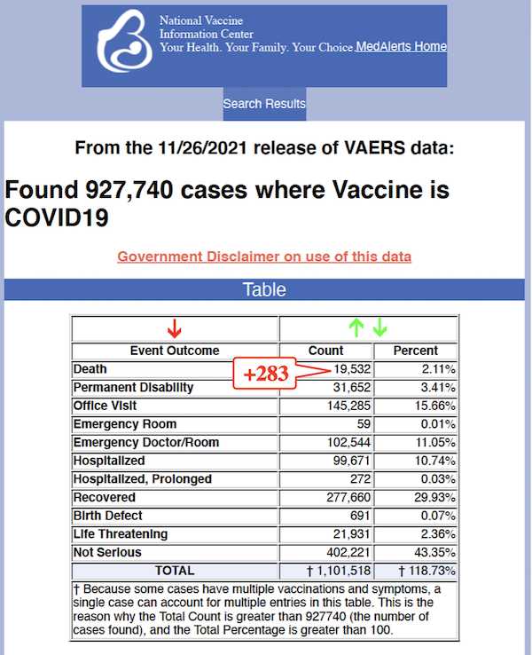 アメリカのCDC(疾病予防管理センター)とFDA(食品医薬品局)が共同で運用しているVAERS(ワクチン有害事象報告システム)への報告によると、「COVID-19(2019年-コロナウイルス感染症)ワクチン」を接種して間もなく死亡した人の数は11月26日現在、1万9532名に達した。1週間前より283名増えている。 VAERSの数字を見ても副作用の深刻さは理解できるが、この数字は自主的な報告に基づくものにすぎず、過去の例から実際の1%未満あるいは10%程度と言われている、実際はこの10倍から100倍、つまり数十万人に達すと見られている。 COVID-19の「感染者数」や「死亡者数」が水増しされる一方、「ワクチン」による副作用が小さくしていることは公然の秘密。例えば、アメリカの野球界では伝説的な人物、ハンク・アーロンはモデルナ製「ワクチン」を接種してから17日後の1月22日に死亡している。 フルトン郡の検死官がアーロンの死と「ワクチン」接種は無関係だとしていると報道した有力メディアが存在するが、ロバート・ケネディ・ジュニアが検死官に確かめたところ、検死していないどころか、遺体を見ていないと語ったという。(Robert F. Kennedy Jr., “The Real Anthony Fauci,” Skyhorse Publishing, 2021) また、以前から指摘されていることだが、2度目の「ワクチン」を接種してから2週間までは「非接種者」と見なされ、「ワクチン」ではなくCOVID-19で死んだことにされている。