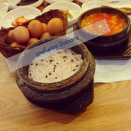 チョングッチャン(清麹醤/청국장)は納豆のようであり味噌のようでもある...納豆っぽい味噌です!チョングッチャンチゲはその、納豆の匂いがする味噌を使ったチゲ。韓国のお味噌汁。そしてスンドゥブと合体~したのがチョングッチャン・スンドゥブ。チョングッチャンのコクでスンドゥブの辛さがマイルドに。美味!発酵食品の力で美肌にもよさそう~(๑>ㅂ