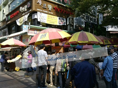 PIFF(釜山国際映画祭)広場があるプサンの映画のメッカ南浦洞に人だかりが!(≧∀≦*)♡このPIFF広場は多くのスターや監督の手形が残されている名所ですが人々が集まっているのはこの屋台。イ・スンギがTV「1泊2日」で紹介して以来さらに人気を呼んだホットク、シアッホットク(씨앗호떡=種ホットック)の屋台。休日の夜は100人近い行列でしたが平日昼間は10~20人。こちらのホットクはソウルや新大久保の色白柔肌ホットクと異なり濃いきつね色のカリッとした外皮。中にこしあんを入れて多めの油で揚げ焼きにされたホットックはあんドーナツ色。仕上げに手袋をしたお店のおばさんがやおらホットックの側面にはさみで切り込みを入れます!その切り込みからかぼちゃの種やヒマワリの種、ピーナッツをスプーン一杯入れて紙コップに入れて渡してくださいます。あたたかくやわらかいこしあんに香ばしい実りの秋の種たちの歯ごたえが渾然とした美味しさ!(≧∀≦*)♡濃いきつね色のホットック生地は外はカリッ、中はもちっとダブルな舌ざわり。秋の風が冷たい釜山で今大人気なホットックでした。1,000W。食事のスターターに小鉢入りのかぼちゃのおかゆも供されたり。こんな大きなカボチャが収穫される季節だから砂糖をつかわないかぼちゃだけのやさしい甘みのお粥はほんのり秋を伝えます。Harvest!お粥と言えば韓国で来月実施されるセンター試験、수능の日の朝食、昼食は消化も良く体も温まるおかゆが多いとか。経済紙によると今年はお粥のチェーン店が全国支店に拡大して絶対落ちない粥불낙(不落)죽の予約を絶賛受付中とのこと。プルナク(불낙=不落)粥はプルナク鍋由来。불낙はその名の通りプルコギ(불고기=韓国式炒め焼肉)とナクチ(낙지=蛸)が具材の鍋。コリアタウン新大久保でも数年前からいただく機会が増えていました。そんなタンパク質たっぷりの불낙お粥受験生ではないですが食べてみたい~美味しそう!受験生の方はふぁいてぃんo(^-^)o余談ですがドラマ「応答せよ、1997」「応用せよ、1994」の影響か、街を流れるK-Popで90年代のものも聴こえてくるように...この曲はまさに1994年。to be continued...!?buzz KOREAClick...にほんブログ村 韓国映画にほんブログ村 映画にほんブログ村 映画評論・レビューにほんブログ村 韓国情報にほんブログ村 K-POPにほんブログ村Copyright 2003-2026 Dalnara, confuoco. All rights reserved.本ブログ、サイトの全部或いは一部を引用、言及する際は著作権法に基づき出典(ブログ名とURL)を明記してください。無断で本ブログ、サイトの全部あるいは一部、表現や情報、意見、解釈、考察、解説ロジックや発想(アイデア)・視点(着眼点)、写真・画像等もコピー・利用・流用・盗用することは禁止します。剽窃厳禁。悪質なキュレーション Curation 型剽窃、つまみ食い剽窃もお断り。複製のみならず、ベース下敷きにし、語尾や文体などを変えた剽窃、リライト、切り刻んで翻案等も著作権侵害です。