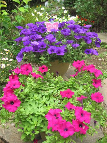 雨の日の合間を縫って サフィニア が 見事 に咲き誇りました。