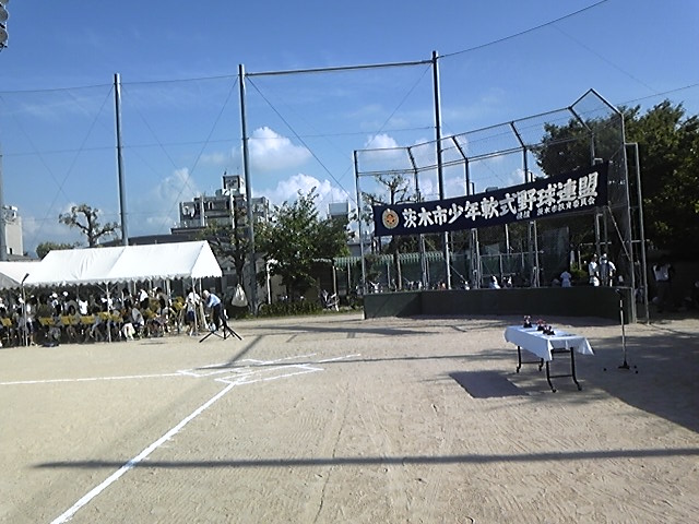 皆さんアンニョハセヨ、かつ・ビョンです。日曜日は、茨木市連盟主催の大会。6年生にとっては最後の大会。愛息のチームも試合が入ってたんです。吾輩は、今回審判の予定が無く応援団長で、大会の手伝いもありチームとは別にで移動。開会式も終わり、試合会場に会場には、サッカーの試合中。時間が早いのかな??って思ってたら先輩審判の方から“かつ・ビョンさん!!どうも、試合会場確保出来てなかったみたいや!!”頭の中は茨木連盟の大会。グランドが確保出来てて当たり前。“そんな事あるのん??”連盟同士の試合の為、各チームのグランドを借りてなんとか試合可能に。吾輩も、で30分掛けて会場に移動。試合会場はからで5分程。なんとか試合開始。相手チームは強豪。勝敗は始まる前からある程度の予想は…。愛息も、8番ファーストで出場。守備は無難にこなしたんですが、2回ホームに大暴投。流石に監督もお冠。3回のバッティング(ファーストゴロ)終了後、交代。試合も、1対16の大敗。その後吾輩は、最後まで連盟のお手伝い。しかし、本当にビックリした一日でしたね。