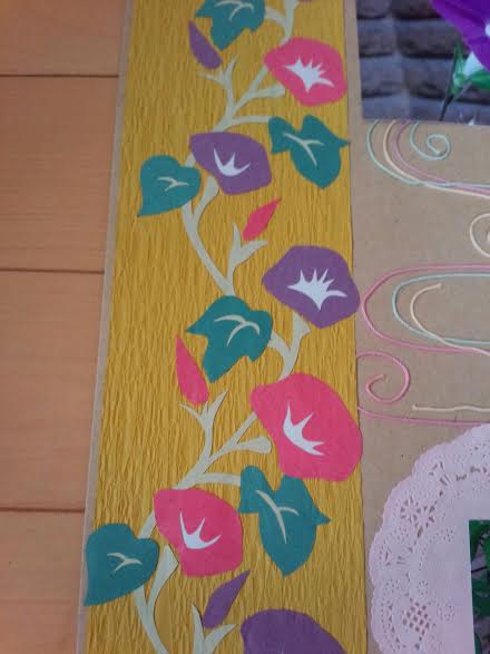 和紙で作った朝顔の切り絵流水文様を糸で表現してみました色工房voice/文具クラフトパンチ