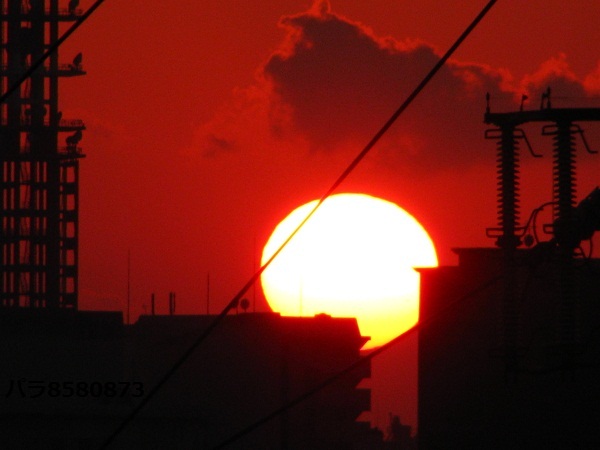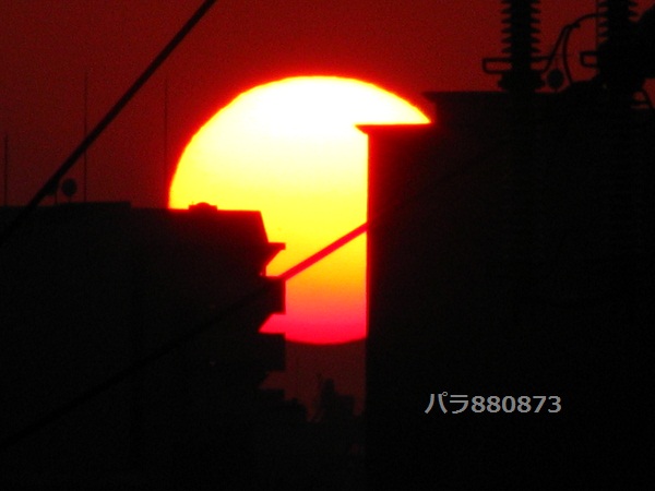 色付いた夕陽、丸い形のギリギリです。