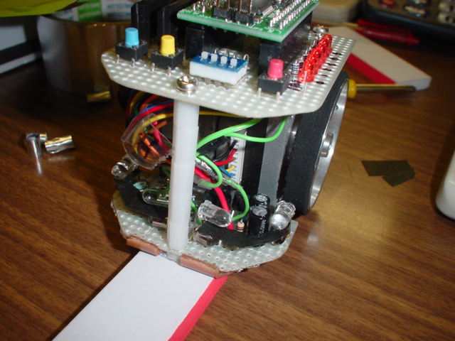 ばたばたしながら調整をしていたら,調整するたびに調子が悪くなってしまいました.特にセンサの回路は途中でミスしてダメージを与えてしまったようで,作り直さないといけないようですが,間に合わないのでソフトで可能な限り補正を加えて明後日の中部地区大会に持って行きます.二足マウスは何も手を加えられなかったので,持っていくのやめようか,それとも徹夜してみるか・・・--追記--徹夜じゃないけど,今まで(0:30)かかって前より安定性なりました.完走は無理っぽいですが,以前より先に進めそうな気がします.というわけで,少し大きめのバックで行くことにします.