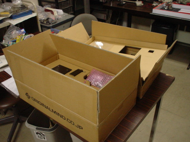 二箱で納品されました.意外と軽いです.見ての通りキットです.すぐに組み立てたいところですが・・・しばらく無理そうです.オリジナルマインドのmini-CNC BLACK 1510