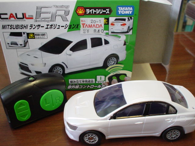 帰りにCAULを買いに行きましたが,以前買ったのと同じものがありませんでした.迷った挙句にためし買いしたのがこれ↓分解してみると,ギヤもホイール・タイヤサイズも違います↓無駄買いでした.しょうがないので,普通にラジコンとして子供と遊びます.☆なんと70%OFF☆【緑箱】タカラトミー★赤外線コントロールカー★CAUL ER(カウルER)ランサー エボリューションX【特価玩具】
