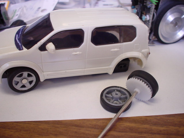 ちょっとパワー的に無理しますが,dNANOのモータを使うことにします.ここから真鍮のピニオンを搾取.半田で穴を埋めて,穴を開けなおし.でも実は穴あけが結構大変.高速なドリルで穴あけすると,温度が上がって半田がドリル歯を埋めるのかなかなか素直に穴あけできません.最後は,1mmのピアノ線を通したまま半田を溶かし,ピアノ線を引き抜いて穴あけ.どうやって固定するかいろいろ考えたのですが,結局手っ取り早い方法で固定.針金の縛り具合でギヤのかみ合いを調整して,最後は瞬間で固定.バルサに瞬間がしみこむとこちらも適度な強度を持ちます.片方はできたけど,もう片方分のギヤが無いので帰りがけにディスカウント店でおもちゃのラジコンを購入してきます.70%OFF!CAUL-カウル-「ニッサン デュアリス」【08/08】