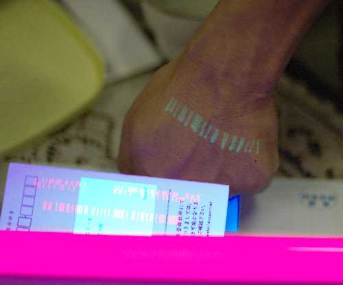 ブラックライトを当てると郵便物のバーコードが浮き出てきます.昔そういう写真を撮っていたのを見つけたのでアップ.