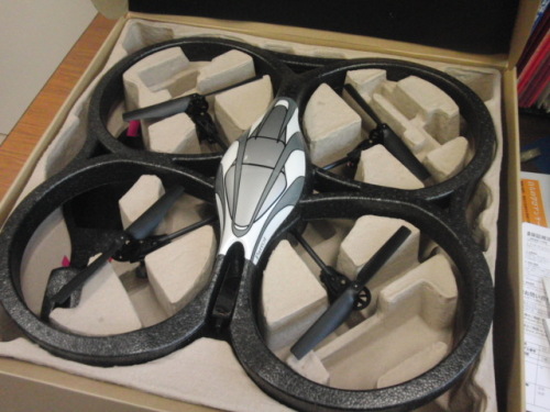AR.Drone借りてきて飛ばしました。この安定感には脱帽です。闘志が湧いて来ました。大きさを比較すると、自作のクアッドコプターと偶然にもほぼ同じ。発泡スチロール板でガードを作ってもいいかもしれませんね。AR.Droneを操縦して、高さ方向の制御をかけた方が操縦しやすいなぁ、と思ったので、早速ですが超音波センサを取り付け。置いた状態では地面に近すぎですが、地面から2センチ位までゆっくり上昇・下降できれば御の字です。使った超音波センサの信号は、アナログ、パルス幅、シリアルの3通り出てますが、今回はパルス幅を読み取ることにします。比較した結果、誤差と変動がすくなく安定した距離が読めます。マイコンの処理がだんだんと込み入ってきましたが、ArduinoのDigital 3 pinに接続して、割込み処理でパルス幅読み取りを行なってみるつもりです。Android端末/iPhone/iPad/iPod touch等スマートフォンで操縦!新感覚Wi-Fi コントロールラジコンヘリコプター!ラジコン ヘリ(室内・屋外) Android端末/iPhone/iPad/iPod touchで操縦! PARROT AR.Drone楽天から買えるのはこれ↓ どんな信号がでてるかは不明。超音波センサー USTX-1(送信部)