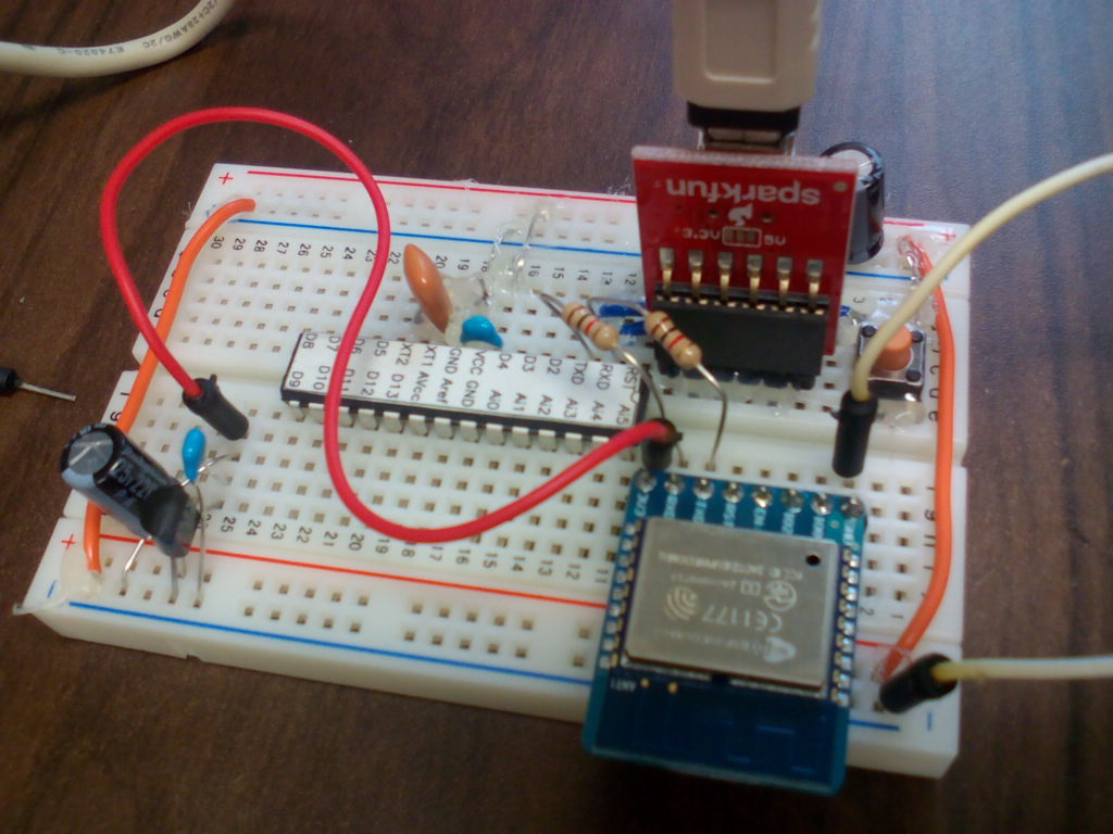 ESP-WROOM-02(ESP8266)とArduinoを使った工作を2種類作りました。センサの値を読んでサーバーに送ります。何に使うかはまだ秘密。ちゃんとできてから。