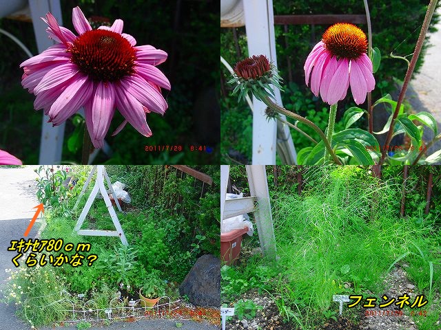 エキナセアが初めて咲きました!去年購入した 苗株 今年ぐんぐん成長です!コモンマロウも 小さい背丈ながら 沢山のお花を咲かせています。この子は種から育てたから思い入れもあって かわいいな~。時間に追われハーブティーの実験までは出来ていないけど、やってみたいな!