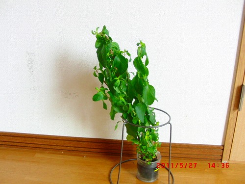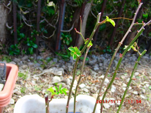 何日か前から 室内から屋外へ出しています。まだまだ北海道はさむいので心配ですが新芽が出て来ました。(過保護すぎますよね!) まだまだ 寒くて 葉っぱが寂しいです。早くワサワサしてほしい。
