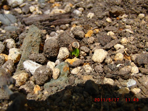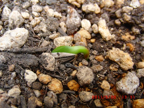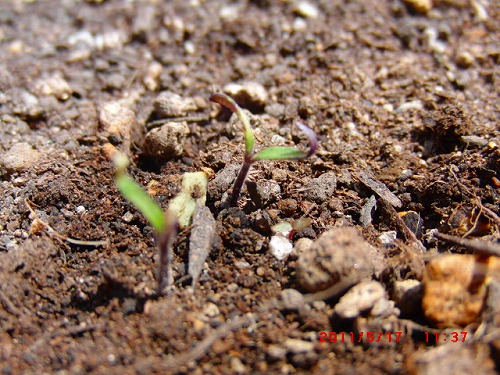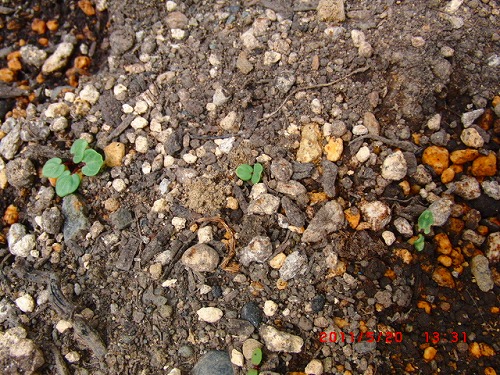 こんな感じで 蒔いた5個が がんばっています! なんか応援したくなる!よいしょ!って感じです。