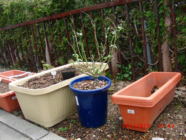 鉢をやっとサイズUPして8号に!土もバラ用の物をホームセンターで購入しました。急に室内から寒い北海道の外に出されてので、葉っぱがほとんど取れてしまいました。ごめんね。
