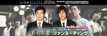 ☆出演者2名との握手会あり。 ☆ 白い巨塔 ファンミーティング《DVD発売記念》〔東京〕公演日 2008年4月20日(日) 開演 17:00 / 開場 16:00 会場 中野サンプラザ(東京) 出演者など [出演]キム・ミョンミン / イ・ソンギュン 一般発売2008/3/9(日) 10:00発売韓流のことなら ☆ 白い巨塔 DVD-BOX1発売予定日は2008年5月9日です。ただいま予約受付中です。☆ 白い巨塔 DVD-BOX2発売予定日は2008年6月6日です。ただいま予約受付中です。野望、嫉妬、陰謀… 医学会の知られざる実態と生命の尊厳を描いた、社会派ドラマの不朽の名作が今、海を越えて甦る!山崎豊子原作、社会派ドラマの名作が韓国ドラマで登場! つい引き込まれてしまう展開の面白さは韓国版でも健在。韓国では30~40代の男性層の取り込みに成功し、高い評価と支持を獲得(最高視聴率23.2%)韓国歴史ドラマで男性ファン層が拡大した日本でも大注目!!