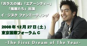 「ガラスの城」「エアーシティー」「強敵たち」出演のイ・ジヌク JAPANファンミーティング―The First Dream of The Year― イ・ジヌクと2008年最後の夢のひと時を送りましょう! ★ イ・ジヌク JAPANファンミーティング先行抽選販売申込受付期間: 2008/11/21(金) 11:00 ~ 2008/12/2(火) 11:00 公演日 2008年12月27日(土) 開演 15:00 / 開場 14:00 会場 東京国際フォーラム ホールC(東京都) 会場へのアクセスを見る 出演者など [出演]イ・ジヌク 一般発売2008/12/6(土) 10:00発売 全席指定-10,000円 イ・ジヌク のことなら