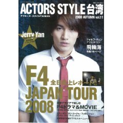 ☆ アクターズ・スタイル台湾 11ただいま発売中です。F4全日誌上レポート!!JAPAN TOUR2008Jerry Yan最新ドラマ会見来日グラビア特集最新ドラマで楽しむF4ドラマ&MOVIEF4のことなら F4、来日記念CD+DVD同時リリース! 2008年10月に来日公演を控えたF4の、来日記念ベスト・アルバムとベストDVDが同時リリース! CDはF4ステッカー付き、DVDは未公開ミュージック・ビデオを多数収録したベスト的内容! ☆ PRECIOUS MOMENT~F4 BEST MUSIC VIDEOS FOR 2008 JAPAN TOURただいま発売中です。ニューバージョン&初商品化ミュージック・ビデオ満載!全30曲を収録したファン必見DVD08年10月に行われるF4日本ツアーの来日記念盤として、F4のベストCDとベスト・ミュージック・ビデオ集(DVD)を同時リリース!コンサート前の必見、必聴アイテム!F4の初の日本ツアーのための日本企画商品!【初回仕様】F4ポストカード封入F4のことなら ☆ FABULOUS~BEST CD for F4 Japan Tour 2008 ただいま発売中です。F4のグループ曲全10曲と、各ソロ楽曲から厳選した、2枚組の日本企画来日記念盤!08年10月に行われるF4日本ツアーの来日記念盤として、F4のベストCDとベスト・ミュージック・ビデオ集(DVD)を同時リリース!コンサート前の必見、必聴アイテム!F4の初の日本ツアーのための日本企画商品!【タイアップ】■『Experience (Goodbye) / 體驗 F4』・・・BS日テレ「君につづく道」エンディン主題歌■『Waiting For You (No Escape) F4』・・・BS日テレ「君につづく道」オープニング主題歌■『流星雨 F4』・・・NHK海外ドラマ「ザ・ホスピタル」主題歌■『You Are My Only Persistence 言承旭』・・・NHK海外ドラマ「ザ・ホスピタル」主題歌【初回封入特典】初回のみF4ステッカー封入【歌詞対訳】北京語歌詞、日本語対訳付 F4のことなら ☆ F4 A Go! Go! Go! ヴィック編☆ F4 A Go! Go! Go! ジェリー編☆ F4 A GO!GO!GO!ヴァネス・ウー編☆ F4 A GO!GO!GO!ケン・チュウ編ただいま発売中です。F4メンバー総出演!台湾人気バラエティ番組「Jacky go go go」 F4特別編集版がいよいよ日本に上陸! F4メンバーをゲストに迎え、グルメ、ゲーム、スポーツと台湾の魅力を満喫。ライブでは見られないバラエティならではの4人の貴重映像が満載! ※本作は、台湾で放映された映像から抜粋・編集した内容となります。 F4のことなら F4台湾政府観光局プロジェクトドラマ☆ 君につづく道 DVD-BOXI☆ 君につづく道 DVD-BOXIIただいま発売中です。台湾の景勝地の数々を舞台に、10年の時を経てそれぞれが違う人生を歩んでいた高校時代の友人たちの成長や友情、恋愛や家族愛などを描いた、台湾政府観光局プロジェクトドラマ。全編にわたり散りばられたF4最新アルバムの楽曲と台湾の名勝にのせ、複雑に絡み合った友情と愛情。それぞれが模索する中、彼らが辿りつく道とは…☆ サウンドトラック「君につづく道~Wish to See You Again」(DVD付) [CD+DVD] ただいま発売中です。 F4のことなら ☆ F4 Waiting for You(仮) ただいま発売中です。 F4の4年ぶりのニューアルバムに、初商品化となるビデオクリップ、そして特典を付けたF4豪華パッケージにした日本独自企画商品。 豪華商品内容:■F4の最新アルバム「Waiting For You」(北京語読み仮名&対訳付き)■F4のMV2曲を収録したDVD(アルバムのM-1、2のMV 2曲)■F4の日本盤のみの写真も使われている08年カレンダー■F4ノートブック■F4特製マウスパッド F4のことなら
