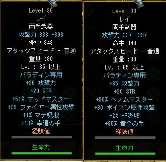 └(^∇^ )X( ^∇^)┘ドモドモ えー 完エリレイを作る事を目指して早5ヶ月。先に生贄完レイを購入していたので、ただ、ただ1本エリに育ってくれればと願い続け、トレで買ったり、ギルメンから買ったり、ドロップしたりしてここまで育てた未使用レイは計8本。。。育った補正とその後は以下のような感じ。1.STRベノムHP 生贄2.STAデスMP ベース ※1と2で完レイ成功(・∀・)3.DEXデスHP 売り4.STAベノムMP ベース5.STRベノムHP 売り6.STRマッドMP 生贄 → 売り ※4と6で完レイ失敗(;´д`)7.INTデス 売りそして8本目。。。。8. 長かった。。。。。生贄完レイ購入時に『来るべき日が何時になるか判りませんがね。』と書いてはいるが、まさかここまでかかるとは(´~`ヾ) ポリポリ・・・先に成功したデスレイでMPの使い勝手の良さを感じては居たが、もはやそんな贅沢は言ってらんねーーーーーーーーー!111111っと勢い込んで深夜3時に泉に特攻。これ失敗したら・・・・・・・(’’; ・ ・ ・ ・ ・ ・ ・ ・ ・ ・ ・ ・ ・ ・ ・ ・ ・ ・ ・ ・ ・ ・ ・ ・ ・ ・ ・ ・ ・ ・ ・ ・ ・ ・ ・ ・ ・ ・ ・ ・ ・ ・ ・ ・ ・ ・ ・ ・ ・ ・ ・ ・ ・ ・ ・ ・ ・ ・ ・ ・ ・ ・ ・ ・ ・ ・ ・ ・ ・ ・ ・ ・ ・ ・ ・ ・ ・ ・ ・ ・ ・ ・ ・ ・ ・ ・ ・ ・ ・ ・ ・ ・ ・ ・ ・ ・ ・ ・ ・ ・ ・ ・ ・ ・ ・ ・ ・ ・ ・ ・ ・ ・ ・ ・ ・ ・ ・ ・ ・ ・ ・ ・ ・ ・ ・ ・ ・ ・ ・ ・ ・ ・ ・ ・ ・ ・ ・ ・ ・ ・ ・ ・ ・ ・ ・ ・ ・ ・ ・ ・ ・ ・ ・ ・ ・ ・ ・ ・ ・ 泉 d(゜-^*) グッジョブ ようやく、よーーーーーーやくレイ育成の呪縛から解放されたぁ~~ (´▽`) ホッなんか日記にもレイの事しか書いてない感があるけど、これからリアル事も含め書いて行こうとにわかに決意。いやぁ 継続って難しいですね(⌒▽⌒ゞ それでは、また。