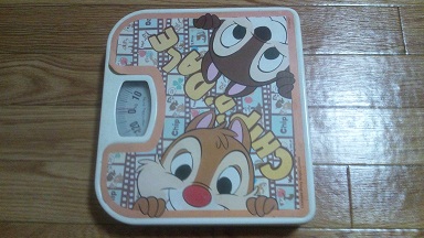 前回の高崎~甲府のぶらり旅のシルバーウィークからまた、3連休!今回は、鬼怒川(きぬがわ)温泉に向かう事にした今日この頃・・・---- ダイエットは相変わらず、続けている。意外に自分でも、既に3ヶ月やっているのは驚き。 現時点で、12kg減である。と言っても、9月は8月と比べ、2~3kgしか減っていない。 そろそろ、ダイット食如きでも、変化は無いレベルとなってきたのであろうか・・・いやいや、これで終了!としたら、また元に戻る事は確定であろう。諦めたら負けという事を心に刻んで、これ以上減らす心意気で続けなければ・・・ と言う状況ではあるが、確かにお腹は凹んできたのが実感できて、既にベルトを切らないと、今までのベルトの穴を目一杯締めても、スカスカとなった。また、スーツ、及び、私服も既にブカブカである。何か、お腹というよりは、全体的に縮んだ気がする。そろそろ、服も買わないといけないか・・・ しかし、前にも書いたが、今まで普通の人が出来る事が出来るようになったのは、今まで太っていた自分にとっては、全てが新鮮である。 やっぱ一番は、服!以前、スノボのウエアを下見に、神保町と神田の間のスキー用品街に行ったが、Mサイズでもすっぽり入った。すごいびっくりした上に、嬉しかった。その日は、調子のって、普通に飲んで食ってしまったが・・・ 今までの自分であれば、欲しい服もサイズ無し、あるのものは微妙なものばかりで、泣き泣き諦めて別のものを買うという事を繰り返し、全く服を買う事に興味は無かった。大型マーケットなどでは、あってもMサイズメインのような気がする。中に多少Lレベルがあるだったので、行く事自体、全くアウトオブ眼中であった。今は以前のららぽーとの件も含め、欲しい服が入る事で、服選びが楽しいのなんの・・・ 後、既にダイット前に、今年の健康診断は終了したものの、来年の健康診断。今の俺は不安なし!かかって来いってな感じである。 そんな中長く続けてきて、自分の体について分かった事がある。寝ている時、腹を上にして寝ると、ダイエット食では腹が減っているのか、凄い腹が鳴る。気持ちは特に腹は減ったと感じないものの、うるさくて逆に寝れないので、横向き、うつ伏せで寝ると音は何故か鳴らないので、常にこちらで寝る事にした。 後、土日に普通に飯を食うと、体重が減るのは大体、水・木曜から減っていく。つまりは、食った分のエネルギーは3日分は自分の体に蓄えているようだ。 それにしても体重計は、安くで買ったディズニーの体重計(980円)で測っている!うーむ。そろそろ、ちゃんと、体脂肪などが分かるタイプの奴を買おうかな。●日課で測っている我が体重計 ちなみに、体脂肪で思い出したが、先週、温泉に行って、体脂肪などが測定出来る体重計で、自分の今の成果を知ろうと100円出して測った。測定結果がレシートみたいな感じで出てきたものの、風呂の更衣室で測ったのだが、更衣室が人がいっぱいで邪魔になるかと思い、家で見ようとカバンに入れて帰った。 家に帰ってびっくり!って言っても、測定結果の中身ではない。測定結果のレシートがない。帰ってきて今までの成果を楽しみにしていたのにどこかで落としたのか、測定結果見れず。結局、自分は、一体体脂肪率はどうなったのか、未だに不明!まだ、見るな。安心すな!って事だろうか・・・ 取り敢えず、目標は後5kg位の減量であろうか。 終わった後は?・・・まだ考えないでおこう。--------------------------------------------------------------------【第二次スーパーロボット大戦α】 現在、「アラド」編 52話クリア。もうすぐ「アラド」編も終わり。金が余ってる為、ここまで来てもサクサク進む。1週目も普通にクリアしたが、この「第二次」って、今までの奴より簡単な方?