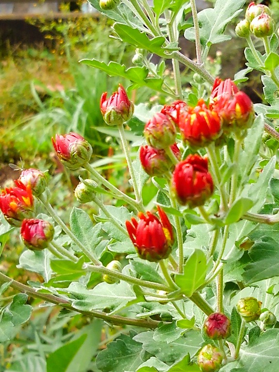 小菊が鮮やかなつぼみを咲かせていますね