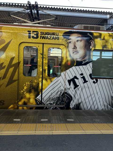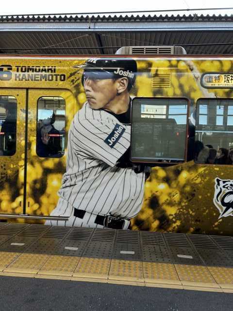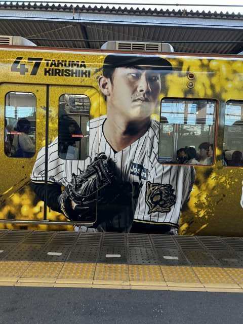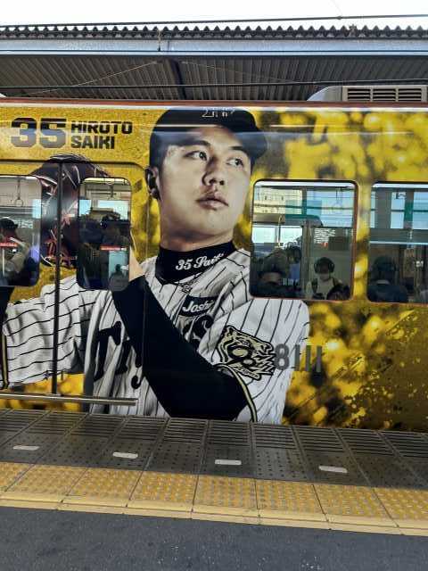 甲子園の地元だけに 大々的な 阪神タイガースのラッピング列車ですね。