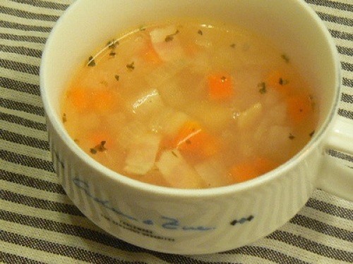 次回こそ、ワイン と 楽しむ大人の一皿レシピでリベンジせねば!…などと言いながら宣言していたような気がしますが、そのときの記事はコチラ → ★ワイン を飲みすぎた翌日に ホッとするレシピ のご紹介です(笑)オトナならワインを飲みすぎたりしないよねっ★…と思ったりもしますが(笑)その昔、ワインで町おこしに成功した北海道・池田町を訪れたときのこと。2時間ほどで、ワイン・ブランデーの空き瓶がずらりと並ぶほど飲んだくれて(あとで数えたら一人2本以上飲んだ計算でした…)、参加者約20人のほぼ全員つぶれた、とか呑兵衛女子の家呑みで、恥ずかしいほど大量の空き瓶を抱えてこっそりゴミステーションに捨てて帰ったとかそんな呑みすぎた翌日の胃にもやさしいスープ♪いやいや、やっぱり何か違うから(笑)コロコロ野菜のコンソメスープ★冷蔵庫一掃料理名:コロコロ野菜のコンソメスープ★冷蔵庫一掃作者:yunachi■材料(4人分)ベーコン / 2枚玉ねぎ / 小1個にんじん / 1/2本大根 / 2cm分じゃがいも / 1個オリーブオイル / 大さじ1粗挽きガーリック / 小さじ1水 / 700cc固形スープ / 1個香りソルト イタリアンハーブミックス / 小さじ1/2粗挽き黒胡椒 / 少々■作り方1.ベーコン、玉ねぎ、にんじん、大根、じゃがいも、は3~5mm角に切る。2.鍋に、オリーブオイルを入れ、ベーコン、玉ねぎ、粗挽きガーリック、にんじん、大根、じゃがいも、の順に中火で炒める。3.鍋に、水と固形スープの素を加え、沸騰したら弱火にし、10分ほど(野菜が柔らかくなるまで)煮る。4.最後に、香りソルトと粗挽き黒胡椒で味を調えて完成♪■レシピを考えた人のコメント冷蔵庫に残った野菜をさっと炒めてコンソメスープで煮るだけ!ハーブソルトのおかげで短時間でも味わい深いスープになります♪詳細を楽天レシピで見る━━━━━━━━━━━━━━━━━━…↓↓ ポイントが貯まるレシピ サイト ↓↓>>最短約 30 秒!▼無料▼会員登録<<━━━━━━━━━━━━━━━━━━…冷蔵庫に残っている半端な野菜を角切りにして、コンソメスープで煮て、香りソルトで味付けするだけ♪手に持ちながら、人差し指でカンタンにフタを開けられるのも便利♪イタリアンハーブミックスが入るせいか、大根やカブ、さつまいも、など“和”の野菜を入れても、ちゃんとイタリアンテイストに仕上がります(笑)今回は冷蔵庫にたまたま残っていたベーコンで作りましたが、ハム、ソーセージ、豚バラ肉、などでもOK!冷蔵庫の整理にもピッタリ!(笑)翌日の朝食には、サルバチアを入れて栄養補給&ボリュームアップ!サルバチアをご紹介した記事はコチラ → ★目に見えてボリュームアップするわけではありませんが、ゴマのようなプチプチが、時間とともに、トマトのタネの部分のようにゼリー状の食物繊維におおわれて、腹持ちがよくなります♪スープの味にはまったく影響しないので、もっとたっぷり入れても大丈夫!ちなみにこのサルバチア、カレーにも入れてみましたが、その存在がまったくわからなくなり、レシピや記事にまとめることは断念しました…(笑)↓↓参加中です↓↓ワインに合う料理レシピいつになったら、ワイン と 楽しむ大人の一皿レシピにたどりつくのか…(笑)いつもブログの応援ありがとうございます!私が参加するレシピブログでは只今、8周年記念「お友達紹介キャン ペーン」を実施中♪レシピブログのミニバナーをクリックした先の応募フォームから会員登録すると、抽選で50名 さまにAmazonギフト券1000円分が当たります♪まだ登録していない方は、この機会にぜひ! ★ランキング参加中★ あしあと代わりにポチッとお願いします♪レシピブログに参加中♪ にほんブログ村 にほんブログ村 ★いつもブログの応援ありがとうございます★