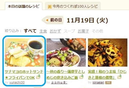 秋が急ぎ足で通り過ぎて、寒さが厳しくなってきたせいでしょうか?ホットサンドのレシピが、COOKPADで話題のレシピになりました~★見てくださったみなさま、つくれぽを送ってくださったみなさま、ありがとうございます! ツナマヨのホットサンド★フライパンでOK by yunachi30■材料(1人分)食パン(5~6枚切り) / 2枚★ツナ / 1/2缶★たまねぎ(みじん切り) / 1/8~1/4個★マヨネーズ / 大さじ1★塩・こしょう / 適量★ピザ用チーズ / ひとつかみマーガリンorバター / 適量■作り方1.★の材料を混ぜる。 朝食用に作るときは、ここまで前日に準備しておくとカンタンです。2.食パンにマーガリンorバターを塗り、【1】で混ぜた具をのせて、もう1枚の食パンでサンドイッチにする。3.テフロン加工のフライパンに油なしでパンをのせ、底面が平らなお皿で、パンをつぶすようにぐっと押しつけながら、中火で2分ほど焼く。 ※焼き時間は火加減にもよります。4.好みの焼き加減になったら、裏返し、裏面も同様に、お皿でぐっと押しつけながら、好みの焼き加減になるまで焼く。5.食べやすい大きさにカットして盛り付ければ完成♪■レシピを考えた人のコメントホットサンドメーカーがないのでフライパンで焼いてみたら、予想以上に美味しくてビックリ!ピザ用チーズがとろりとして美味♪ポテサラやタラモをサンドしてもOKです!ホットサンドメーカーがないなら、皿で押さえて焼いてしまえ! という荒業レシピが、こんなにつくれぽをいただけるとは!こんがりとした焼き目がついた方がおいしいけれど、もう少し大丈夫かなぁ~と油断して目を離すと黒焦げになるリスクもあり、ドキドキとするスリルも味わえます(笑)完成写真はパンの厚さが半分になるくらいプレスされているのが伝わるでしょうか?元々は6枚切りのお買い得品のパンですが、ホットサンドにするとそこそこ美味しく食べられるんですよね~★これだけプレスすると、6枚切り×2枚がひとりでもペロリと食べられます!しかし、ツナマヨ+チーズのハイカロリーなフィリングをひとりで完食するのはいかがなものかと思いますが、まぁ、たまには…息抜きも必要ってことで!(笑)調理道具好きとしては、ホットサンドメーカーも気になりますが、登場頻度と保管場所を考えると、この荒業レシピでもう少しがんばってみようかな(^m^)Vitantonio 正規品 1年保証 ビタントニオ ホットサンドベーカー[ホットサンドメーカー/サンドベーカー/ワッフルベーカー/ワッフルメーカー]ビタントニオ ホットサンドベーカー VSW-450-W [ワッフル/ホットサンド/ポワソンたい焼き 3プレート付きバラエティサンドベーカー]いつもブログの応援ありがとうございます!私が参加するレシピブログでは只今、8周年記念「お友達紹介キャン ペーン」を実施中♪レシピブログのミニバナーをクリックした先の応募フォームから会員登録すると、抽選で50名 さまにAmazonギフト券1000円分が当たります♪まだ登録していない方は、この機会にぜひ! ★ランキング参加中★ あしあと代わりにポチッとお願いします♪レシピブログに参加中♪ にほんブログ村 にほんブログ村 ★いつもブログの応援ありがとうございます★