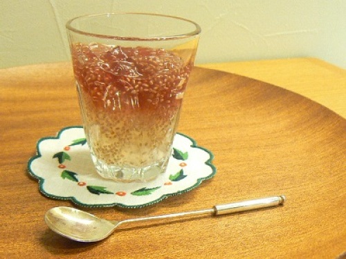 クリスマスシーズンになると作るのが、赤ワインと白ワインでつくるワインゼリー。ゼリーの中のプチプチの正体は… サルバチア。炒りゴマによく似た植物の《種》です♪血液サラサラ効果に欠かせないオメガ3脂肪酸が豊富で、他にも食物繊維、タンパク質、ビタミン、抗酸化物質、及び ミネラルを豊富に含んだ《奇跡の食品》です!サルバチアの詳しい説明は、コチラ → ★レシピブログさんのサルバチアレシピ募集の特集ページにリンクしています♪そのままプチプチとした食感を楽しむのもよいけれど、水に漬けると14倍の水分吸収力のおかげで、種子の周りがゼリー状のプルプルに覆われた食感も楽しめます!500mlのペットボトルの水に、スプーン1杯分のサルバチアを入れて…シャカシャカと振ること数分。そのまま放置すること10分ほどで、ペットボトルの底にサルバチアが沈んでくると、プルプルとしたゼリー状になっています。このプルプル状態のサルバチア、タピオカみたい…というか、ゼリー状になったトマトのタネの部分を食べているような食感で、味や香りはしないので、どんな食材と合わせても違和感はなさそう。このゼリーの正体は、サルバチアの食物繊維。水と一諸に摂ると粘性の高いゼリー状の繊維になるそうです。この食物繊維は腹持ちがよくなることでダイエット効果も期待でき、蓄えた水分は体内で徐々に放出されるので、水分補給にもピッタリだとか★日本ウォーキング協会公認のサルバチア。ペットポトルに入れて、飲むときには、もう一度シャカシャカと混ぜて、水分とサルバチアを一緒に飲むようにしながら水分補給をする方法がオススメされています。そのままでプチプチの食感を活かすのもよいけれど、どうせなら水分を含ませてプルプルにゼリー状にして、ダイエット効果を期待できる食べ方を中心にいろいお試し中です♪手軽なのは、ヨーグルトにプラス★プルプルの食感にするためには、ヨーグルトにスプーン1杯分のサルバチアを入れて、グルグルとかき回して、数分放置してから食べるのがオススメ。プチプチ感を楽しみたいときは、すぐに食べてもOK♪味や香りがないので、ワインゼリーにプラスしても、ワインの風味を損なうことなく美味しく食べられました! クリスマスに鍋ひとつで★カラフル・ワインゼリー料理名:クリスマスに★カラフル・ワインゼリー作者:yunachi■材料(4人分)水 / 250ccサルバチア / 大さじ1(10g)砂糖(グラニュー糖or上白糖) / 35g粉かんてん / 1gレモン果汁 / 1/2個分ホワイトキュラソー / 小さじ1白ワイン / 大さじ2(30cc)赤ワイン / 大さじ2(30cc)■作り方1.小鍋に、水とサルバチアを入れて、よくかき回して15分~30分ほど置く。2.【1】に、砂糖、粉かんてんを加え中火にかける。沸騰したら弱火で1~2分加熱し、レモン果汁、ホワイトキュラソーを入れ、ひと混ぜしたら火を止める。3.同じ容器を2個用意し、【2】を2等分して入れる。4.【3】のひとつを鍋に戻し、白ワインを加えて、沸騰寸前まで温めてから、容器に戻す。5.【3】のもう半分も、同様に、鍋に戻し、赤ワインを加え、沸騰寸前まで温めてから、容器に戻す。6.粗熱が取れたら冷蔵庫で30分ほど冷やす。7.スプーンで崩しながら、グラスに盛り付けて完成です♪ 今回は、グラスの下に白ワインのゼリーを入れ、その上に赤ワインのゼリーをのせました。 盛り付けはお好みでどうぞ♪■レシピを考えた人のコメントさわやかな酸味のふるふるゼリー♪赤ワインと白ワインの両方で作るとクリスマスのおもてなしにピッタリの華やかなデザートに♪写真付で手順を紹介中★詳細を楽天レシピで見る━━━━━━━━━━━━━━━━━━…↓↓ ポイントが貯まるレシピ サイト ↓↓>>最短約 30 秒!▼無料▼会員登録<<━━━━━━━━━━━━━━━━━━…サルバチアは、ジッパー付のパックタイプと、分包タイプがあります。分包タイプは10g入りの個包装ですが、大さじ1杯で10gなので、わざわざ分包を買わずとも、使い勝手はよいような気がします。サルバ チア 200g/サルバチア/チアシード/税込\1980以上送料無料サルバ チア 200g【あす楽対応】_【NEW】サルバチアは今話題のオメガ3脂肪酸(αリノレン酸)を豊富に含み、"奇跡の食品" として注目されています。【3箱以上送料無料】 サルバチア分包 【植物性最高級オメガ3】サルバチアの料理レシピいつもブログの応援ありがとうございます!私が参加するレシピブログでは只今、8周年記念「お友達紹介キャン ペーン」を実施中♪レシピブログのミニバナーをクリックした先の応募フォームから会員登録すると、抽選で50名 さまにAmazonギフト券1000円分が当たります♪まだ登録していない方は、この機会にぜひ! ★ランキング参加中★ あしあと代わりにポチッとお願いします♪レシピブログに参加中♪ にほんブログ村 にほんブログ村 ★いつもブログの応援ありがとうございます★