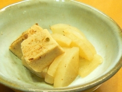 ダイエットメニューをあれこれお試し中です(笑)1週間ほど食事の記録をつけてみてわかったことは…お腹いっぱい食べて、おやつもがまんせずに食べてしまうと、1日あたり2000kcal前後。ダイエットのための目標摂取カロリーは、1400~1500kcal程度。腹八分ならぬ腹七分を目標に、食べる量をいつもの70%程度にとどめればいい計算ですね。やはり日頃から食べ過ぎってことですね(^_^;)メインのおかずと副菜は、今までの半量に、副菜の品数はこれまでよりも1~2品増やしてみようと思っています。そうなると、今までよりも副菜を品数多く作らねばならないので、大根と高野豆腐を、薄味のおだしで煮てみました。炒めて時短★大根と高野豆腐の含め煮料理名:炒めて時短★大根と高野豆腐の含め煮作者:yunachi■材料(4人分)大根 / 1/2本一口高野豆腐 / 12個ゴマ油 / 大さじ1/2*天然粉末だし / 1袋*水 / 2カップ(400cc)*砂糖 / 大さじ1/2*みりん / 大さじ1しょう油 / 大さじ1/2塩 / 小さじ1/4■作り方1.厚手の鍋にごま油を入れて点火、厚さ5mm位の半月切にした大根を、大根の表面が透き通るまでしっかり炒める。2.*の調味料を加えて、沸騰したら高野豆腐を加え、落し蓋をして弱火で5分煮る。※高野豆腐は水でもどさなくてOK3.しょう油と塩を加えてさらに10分煮てから、火を止めて冷ませば完成♪冷める間に味がしみます。■レシピを考えた人のコメント大根を先に炒めて、煮込み時間を短縮!大根が透き通るまでしっかり炒めるのがポイント♪おだしの利いた薄味に仕上げました。詳細を楽天レシピで見る━━━━━━━━━━━━━━━━━━…↓↓ ポイントが貯まるレシピ サイト ↓↓>>最短約 30 秒!▼無料▼会員登録<<━━━━━━━━━━━━━━━━━━…カロリーダウンには、油の使用を控えるべきだとわかってはいるのですが、大根は薄切りにして、表面が透けてくるくらいまでしっかり炒めてから煮込むのが好きなんです♪ついでに煮込み時間も短時間で済みますしね(^o^)b一口サイズの高野豆腐を初めて買いましたが、便利ですね~★そのまま煮汁にポイッと放り込むだけでOK、煮物のかさましにピッタリ(笑)栄養豊かな大豆たんぱく食品小さなこうやだし3袋付き(83g)油麩、別名・仙台麩とも呼ぶようですが、こちらも薄味のおだしでさっと煮ると美味しい♪煮物や炒め物、お味噌汁の具材に!味がたっぷりしみこみ、格別の味わいです。【頑張ろう!宮城】地元グルメ[あぶら麩丼]でお馴染「仙台麩」(2本入)【宮城県産】【東北復興_宮城県】カロリーダウンが大前提なので、油麩はしばしガマンかな(笑)ヘルシーでリーズナブルな食材を使ったレシピのお試しは、まだまだ続きます! ★ランキング参加中★ あしあと代わりにポチッとお願いします♪レシピブログに参加中♪ にほんブログ村 にほんブログ村 ★いつもブログの応援ありがとうございます★